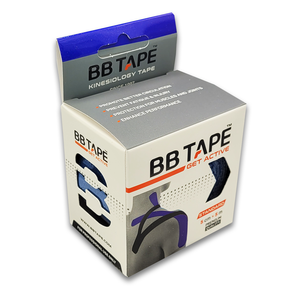 Das Original BB Tape dunkelblau von OKAMED ist ein Profitape – sehr elastisch, qualitativ hochwertig und für alle Anwendungen geeignet. Es besteht hauptsächlich aus Baumwolle. 3% Elasthan-Anteil sorgen für die gute Dehnbarkeit. Der wellenförmig aufgebrachte Acrylkleber dient der Ableitung von Schweiß und Wasser. Somit kann das Tape mehrere Tage getragen werden; auch beim Duschen und Schwimmen. Kinesiologische BB Tapes sind besonders atmungsaktiv, hautfreundlich und wasserresistent. Alle Tapes sind frei von Zusatzstoffen, Medikamenten und Latex. Über das Abheben der Haut und durch Bewegung entfaltet sich die mechanische Wirkung des Tapes. Schmerzen können verschwinden, Verhärtungen in der Muskulatur gelockert werden. Anwendbar ist das dunkelblaue Tape bei Schulterblattbeschwerden, zur Schultergelenkstabilisierung, zur Unterstützung des Schlagarms beim Tennis und Golfen oder aber zur Unterstützung des Sprung-Standbeines bei diversen Sportarten (Hand-, Volleyball).